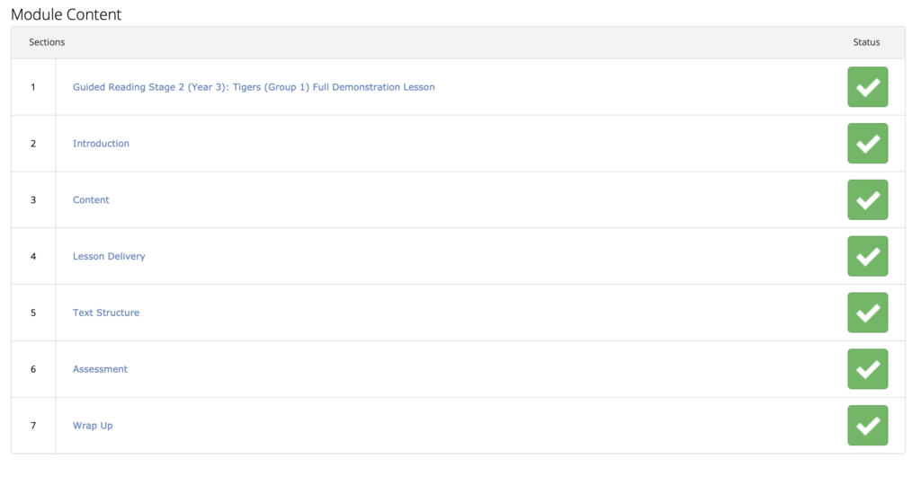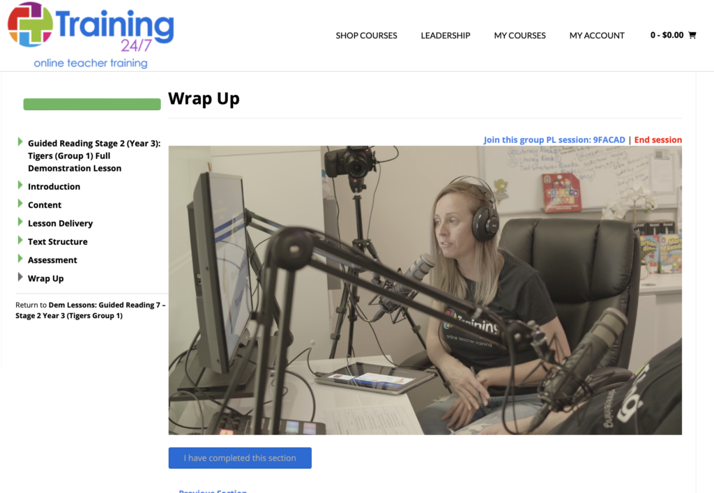 The system will temporarily mark each section (as you move to it) as incomplete. This allows the training to function as normal. Once you click ‘end session’ your previous completion will be fully restored.