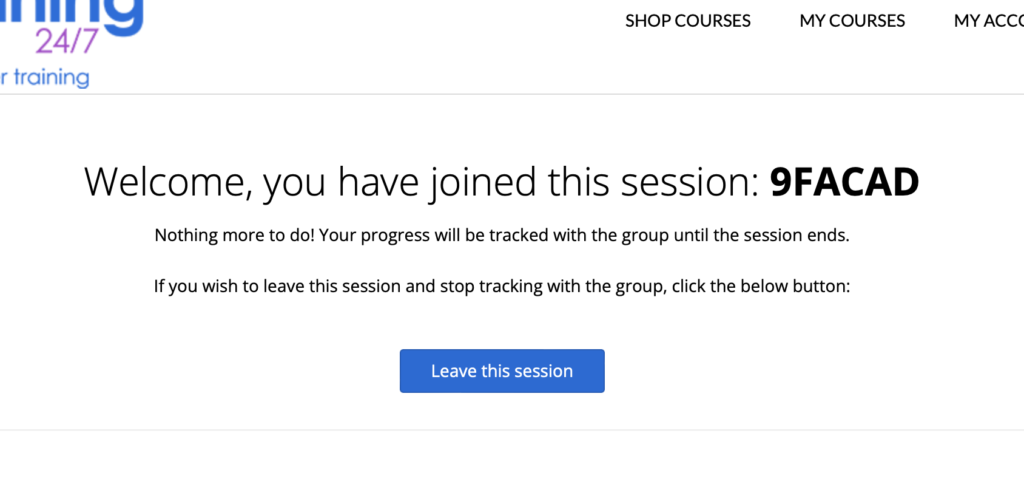 Step (3) PL LEADER: Once everyone has joined the session, they need not do anything else. Progress in the course will now be applied to both the leader of the session, and all participants automatically.