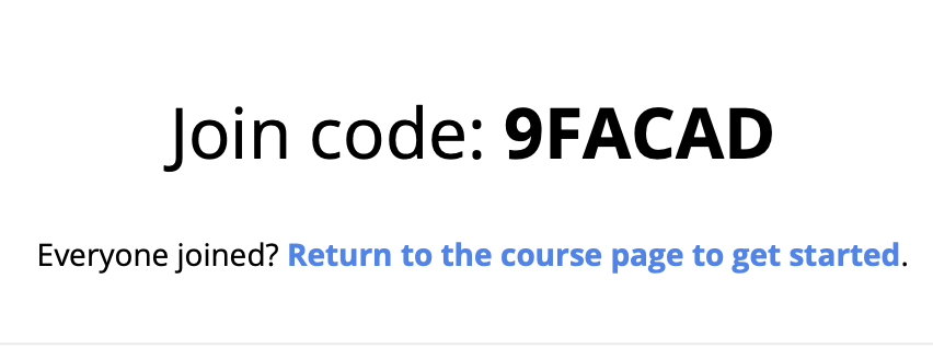 Step (2) A screen like this one will appear, with a QR code and Join Code for participants in the room (or joining online):