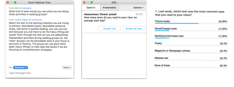 You can chat to your online classmates, ask questions to be raised with the presenter in the room, and participate in any online polls that are run as part of an event. Further, we often have one of our experts available live on the chat session to help answer any questions you might have without needing to interrupt the presentation!